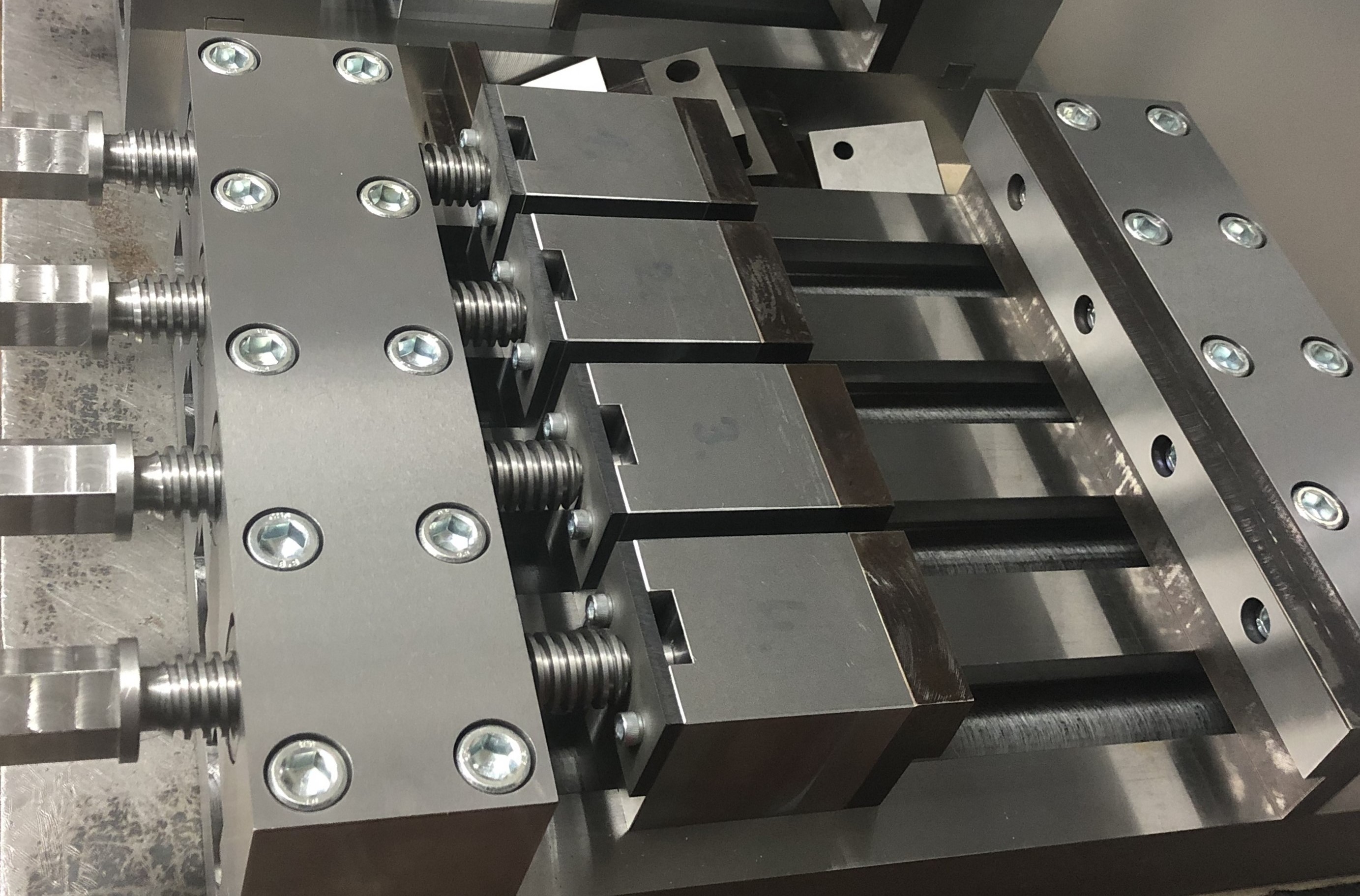 Our company is equipped with three computer-controlled machines for milling parts. The first of these is the Akira Seiki SV815 vertical machining center. This machine features an enclosed workspace with a table measuring 950x480 mm, a spindle that can reach up to 15,000 rpm, a 32-position tool magazine with an arm-type tool changer, and a chip conveyor for continuous chip removal from the machining area. It is controlled by a Mitsubishi M700 system, which can be programmed using ISO codes or with the aid of a post-processor through CAM programming, which is preferred. This machine also includes an additional 4th axis that rotates around the X-axis. Another machine is the CNC mill Optimill F105, featuring a worktable measuring 800x320 mm, a 12-position tool magazine, and controlled by a Sinumerik control system. This machine is also programmed through CAD/CAM systems. The last computer-controlled milling machine is the FV25 CNC knee mill with a Heidenhain control system. Its worktable measures 254x1000 mm, with movement in the X and Y axes, while the Z-axis movement is performed by the spindle, which is mounted in an extendable quill and can machine at speeds up to 6000 rpm.