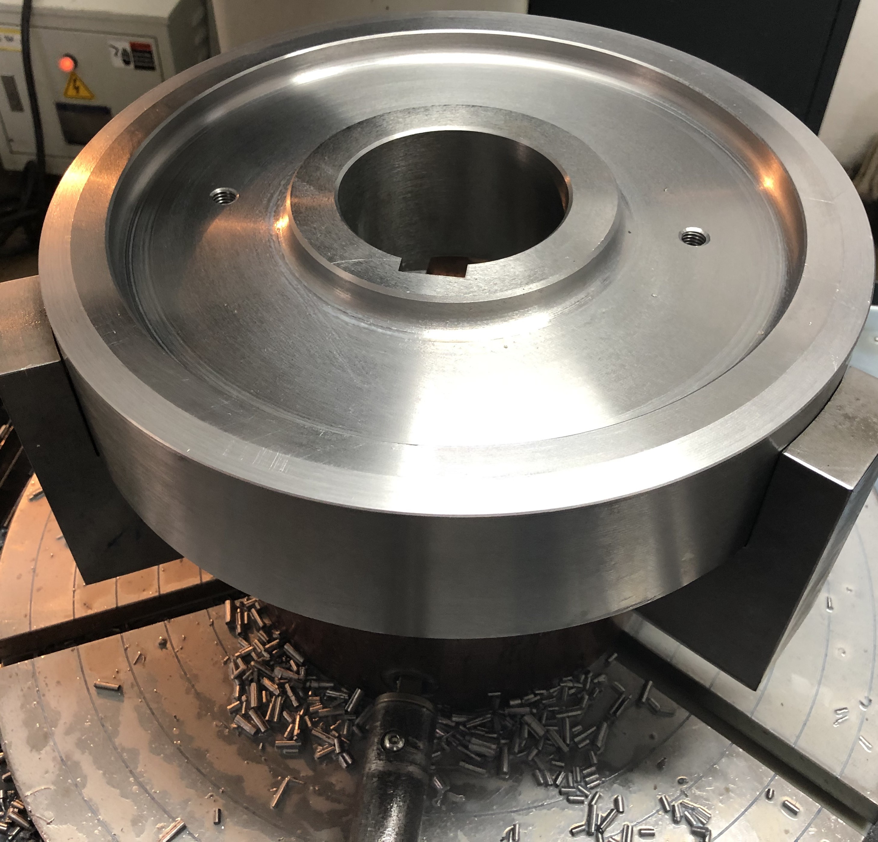 Our machinery also includes machines for keyway shaping, specifically vertical shapers. One is a conventional machine, and the other is computer-controlled. The CNC shaper operates in 3 axes (X, Y, C). This machine allows for machining multiple keyways on a single workpiece or creating a keyway wider than the tool by gradually widening to the sides. It also controls the feed into the cut with automatic withdrawal during the return stroke to achieve a better surface quality on the keyway.