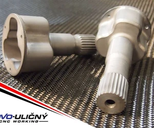 Our machinery also includes machines for keyway shaping, specifically vertical shapers. One is a conventional machine, and the other is computer-controlled. The CNC shaper operates in 3 axes (X, Y, C). This machine allows for machining multiple keyways on a single workpiece or creating a keyway wider than the tool by gradually widening to the sides. It also controls the feed into the cut with automatic withdrawal during the return stroke to achieve a better surface quality on the keyway.